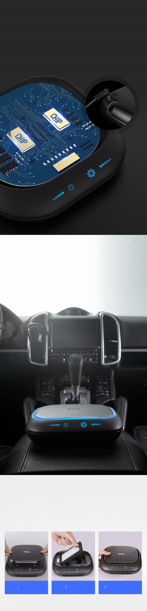 Samochodowy oczyszczacz powietrza TCL model KJ5F to elegancki i skuteczny oczyszczacz powietrza z innowacyjną technologią filtrowania. Doskonale usuwa nieprzyjemne zapachy pozostawiając powietrze świeżym i rześkim.