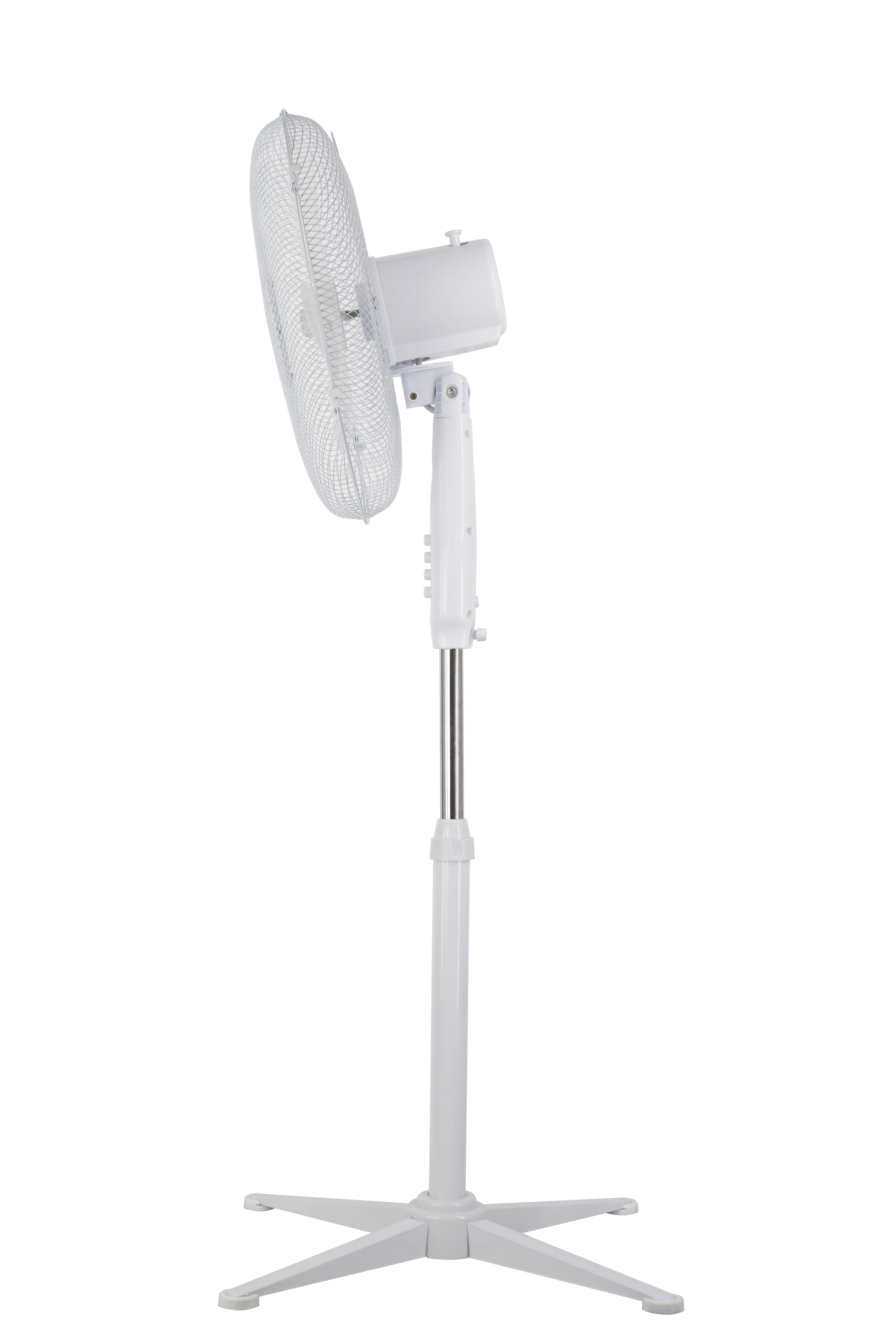 Wentylator umożliwia regulację wysokości w zakresie od 100 do 125 cm, co pozwala dostosować kierunek nawiewu do indywidualnych preferencji i układu pomieszczenia. Zintegrowana funkcja automatycznej rotacji w zakresie 90 stopni (po 45 stopni w lewo i w prawo) zapewnia równomierne rozprowadzanie powietrza, skutecznie poprawiając komfort w ciepłe, duszne dni.